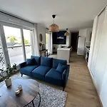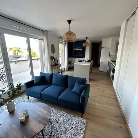 Apartmán Le Contrie - Bel Appartement Avec Terrasse nabízí kompletní kuchyni i pokoje s psacím stolem, přístrojem na přípravu kávy a čaje, TV s plochou obrazovkou se satelitními kanály. Apartmán je 10 minut jízdy autem do Umělý ostrov Île de Versailles, a letiště Nantes Atlantique je 15 minut jízdy autem.